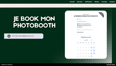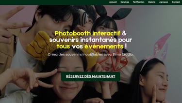 Pour Sima Studio, spécialiste de la location de photobooth interactif, nous avons conçu un site web clair et attractif via Canva. Notre objectif : mettre en valeur leur univers fun et immersif, présenter leurs offres et faciliter la prise de contact en ligne.